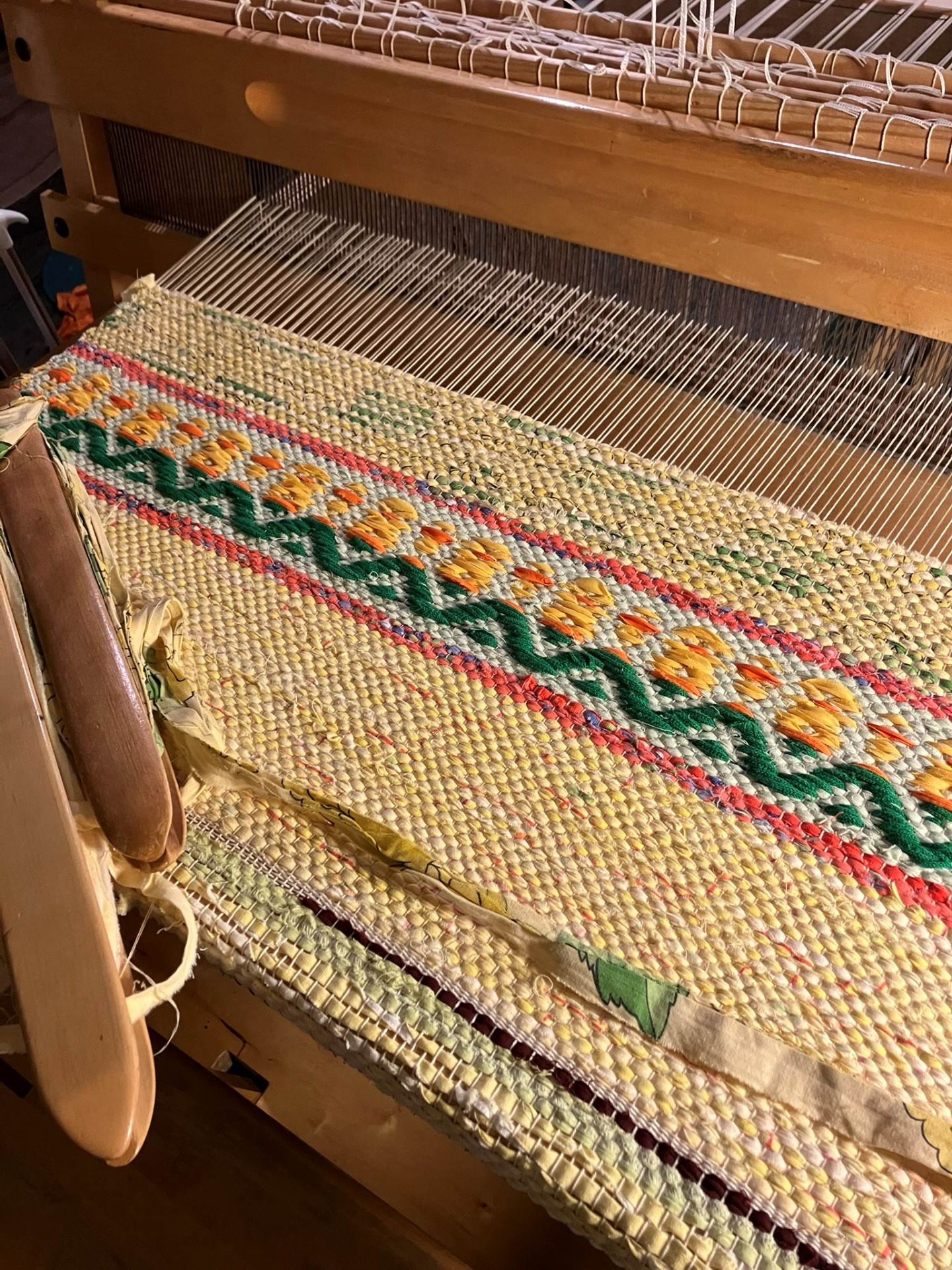 Det här är Vävbiten. En sida om hemvävda trasmattor av återbrukat material. Jag väver nästan alltid med ett tema och färgsättningen är viktig för mig. Du kan även beställa en med egna mått och färgönskemål eller köp en redan färdig matta. Se flera mattor under sektionen Mina Mattor. Skick mig mail vid frågor lisette@vavbiten.com
